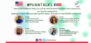 The U.S. Mission in Pakistan in collaboration with the Pakistan-U.S. Alumni Network (PUAN) has launched a virtual series of discussions