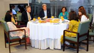 During a traditional iftar at Fatima Jinnah Women University, U.S. Secretary of State John F. Kerry discussed education and the