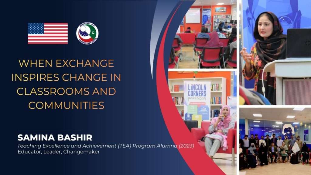 From exchange to impact, this is what long-term educational leadership looks like. A Teaching Excellence and Achievement (TEA) Program alumna (2023), Samina Bashir has translated her U.S. exchange experience into meaningful change in classrooms and communities across Pakistan. From student-centered teaching methods to educator training, environmental action, and mentoring future exchange applicants, her work reflects the lasting power of people-to-people connections.