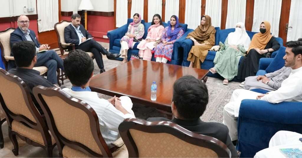 Public Affairs Officer U.S. Consulate General Peshawar Rob Tate welcomed newly returned Kennedy-Lugar Youth Exchange and Study (YES) program, the Study of U.S. Institutes (SUSI), and the Global Undergraduate Exchange Program (UGRAD) alumni at the U.S. Consulate in Peshawar today for a great talk about how they are applying their experiences to their future career, their communities, and to bringing our countries closer together. They also discussed professional and educational opportunities for young people in Khyber Pakhtunkhwa, such as the Fulbright scholarship, which is celebrating 75 years of successes in Pakistan. Please follow for news and information on all these opportunities.